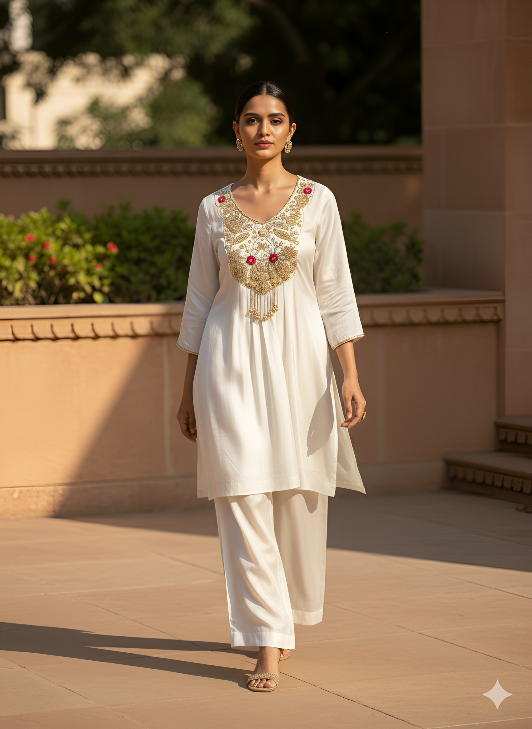 Our new Chinon Co-ord Sets are redefining festive fashion – lightweight comfort meets handcrafted glam.
