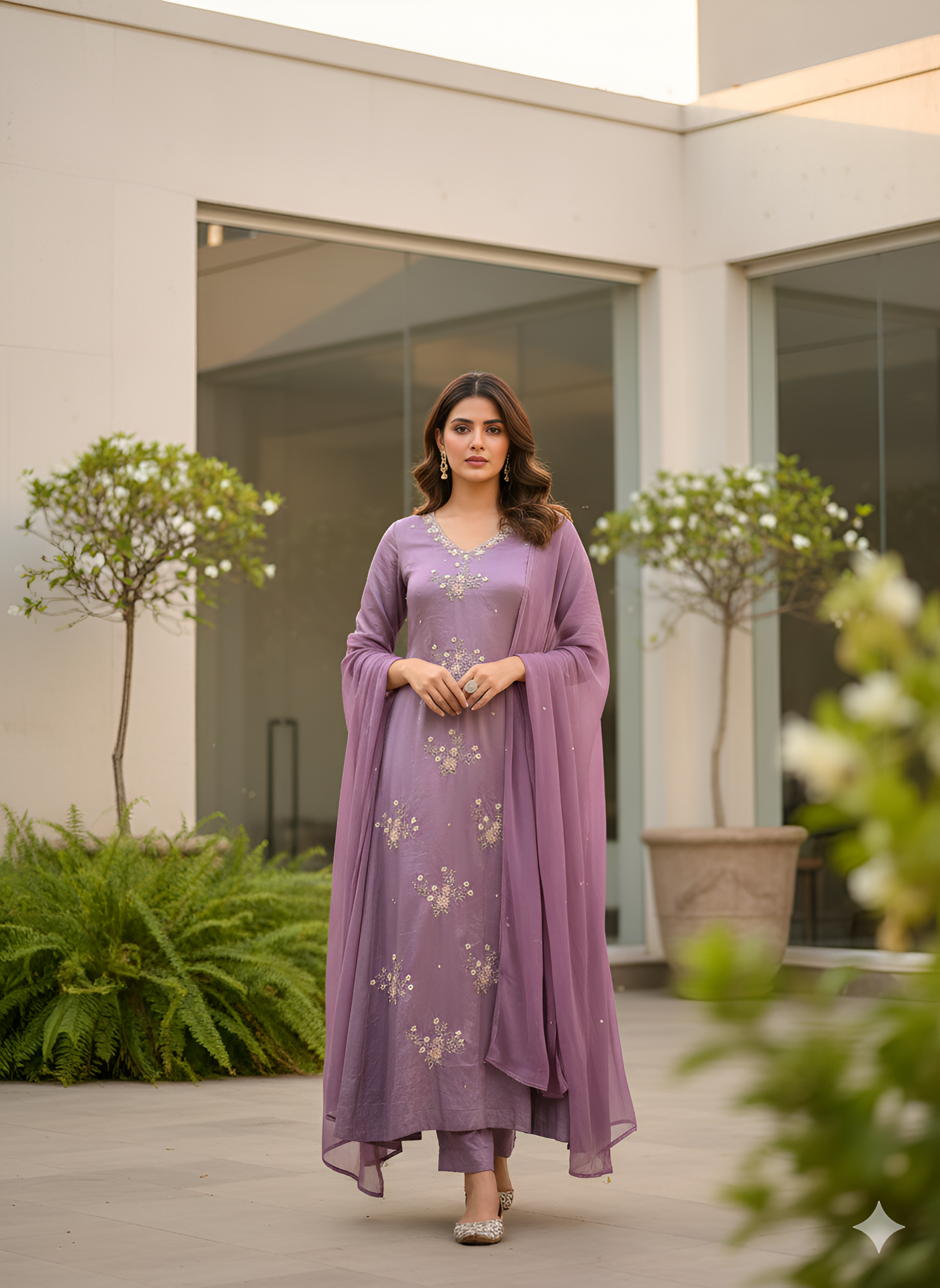 Step into effortless elegance with our Lavender Pure Chinon A-Line Kurta Set, designed for women who love subtle luxury and timeless festive style.
